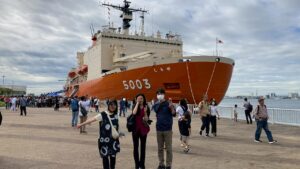 南極観測の支援をしている しらせの一般公開が 神戸ポートアイランドで実施されたので 見学に行きました。もの凄い人で3~4時間待ちとのアナウンスがされていました。